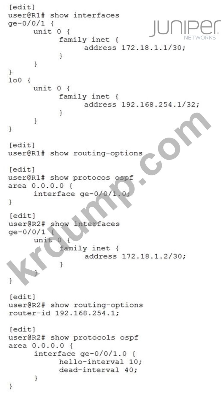 OSPF 인접성을 형성하기 위해 R1과 R2를 구성했지만 인접성이 설정되지 않습니다.