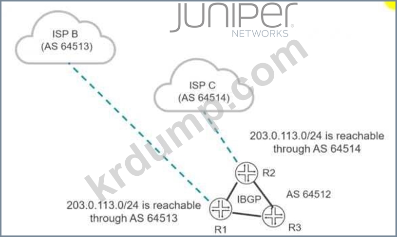 R1과 R3 라우터가 R2를 통해 203.0.113.0/24 네트워크로 향하는 트래픽을 전달하도록 하려고 합니다. 이 요구 사항을 충족하려면 어떤 BGP 속성을 수정해야 합니까?