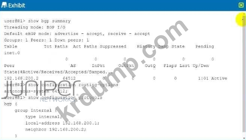 그림을 참조하면 R1과 R2 사이의 내부 BGP가 설정되지 않습니다.