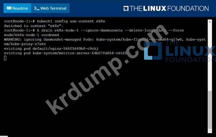 ek8s-node-1이라는 노드를 사용 불가능으로 설정하고 노드에서 실행 중인 모든 포드를 다시 예약합니다.