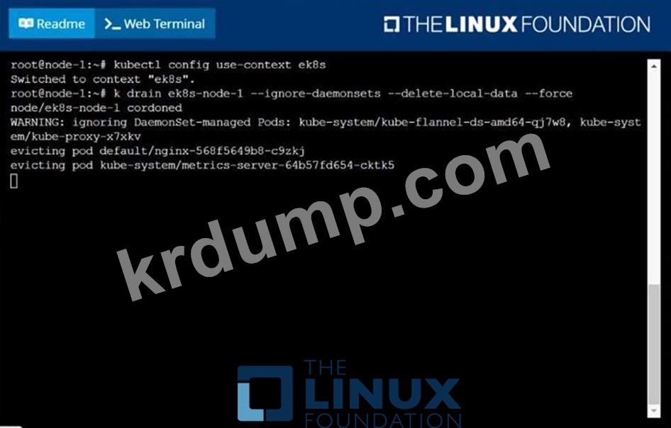 ek8s-node-1이라는 노드를 사용할 수 없는 것으로 설정하고 이 노드에서 실행 중인 모든 포드를 다시 예약합니다.