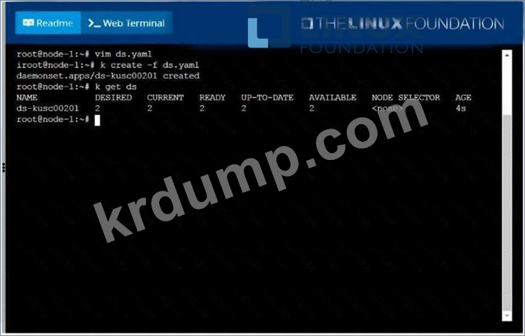DaemonSet을 사용하여 이 작업을 완료하고 ds-kusc00201을 DaemonSet 이름으로 사용합니다.