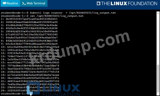 * /opt/KDOB00201/counter.yaml에서 제공된 YAMLspec 파일을 사용하여 카운터 포드를 클러스터에 배포합니다.