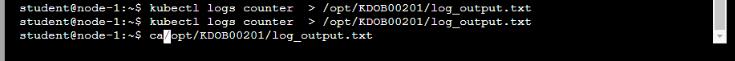 * 실행 중인 포드에서 현재 사용 가능한 모든 애플리케이션 로그를 검색하고 이미 생성된 /opt/KDOB0020l/log_Output.txt 파일에 저장합니다.