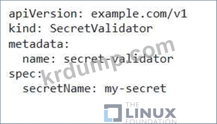 - 배포에 필요한 비밀을 지정하기 위해 'SecretValidator'라는 사용자 정의 리소스 정의(CRD)를 정의합니다.
