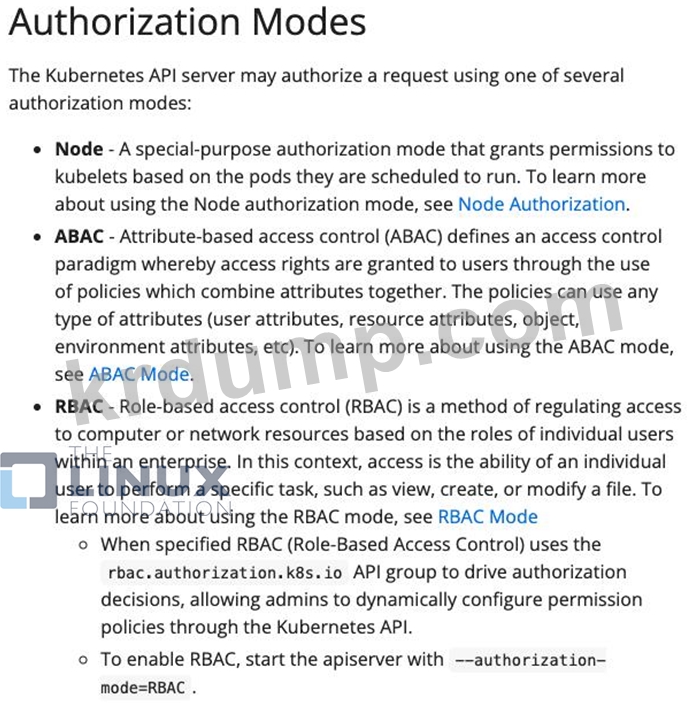 Kubernetes의 어떤 액세스 제어 구성 요소가 권한 부여를 담당하고 요청자가 수행할 수 있는 작업을 결정합니까?