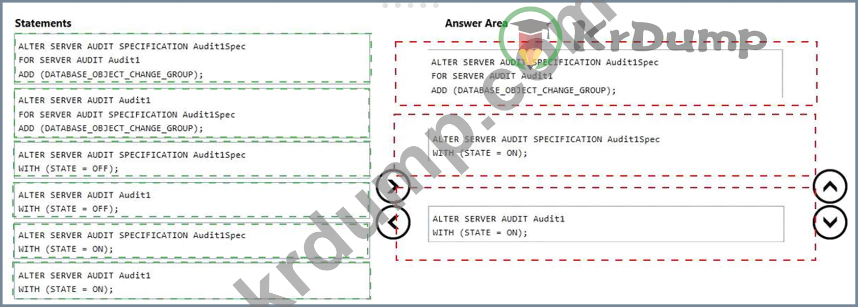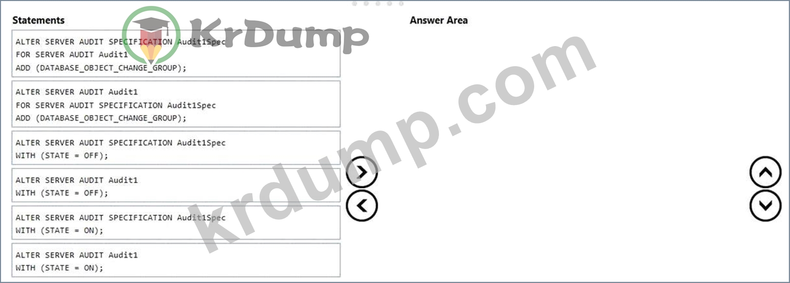 Which three statements should you execute in sequence? To answer, move the appropriate statements from the list to the answer area and arrange them in the correct order.