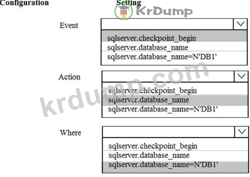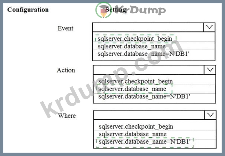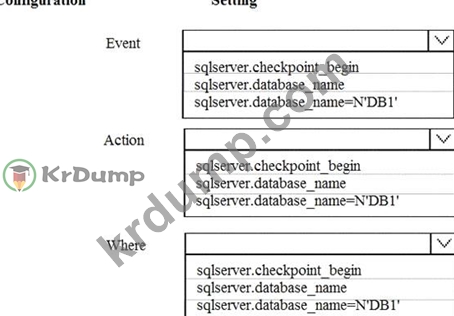 You need to create an Extended Events session to monitor the database checkpoint activity on DB1.