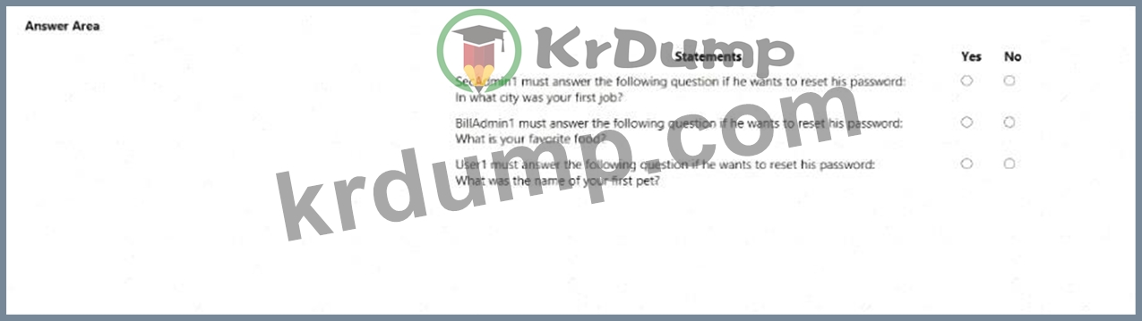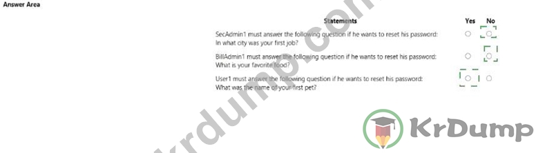 모든 사용자에 대해 셀프 서비스 비밀번호 재설정(SSPR)을 활성화하고 SSPR이 다음 인증 방법을 사용하도록 구성합니다.