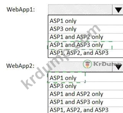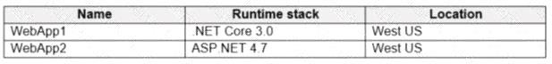 다음 표에 표시된 Azure 웹앱을 만들 계획입니다.