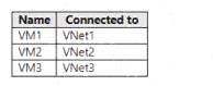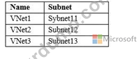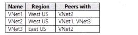 다음 표에 나와 있는 가상 네트워크가 포함된 Subscription1이라는 Azure 구독이 있습니다.