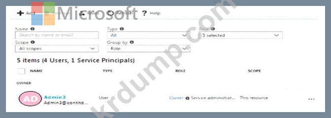 Admin1, Admin2, Admin3이라는 세 명의 글로벌 관리자가 포함된 Azure Active Directory(Azure AD) 테넌트가 있습니다.