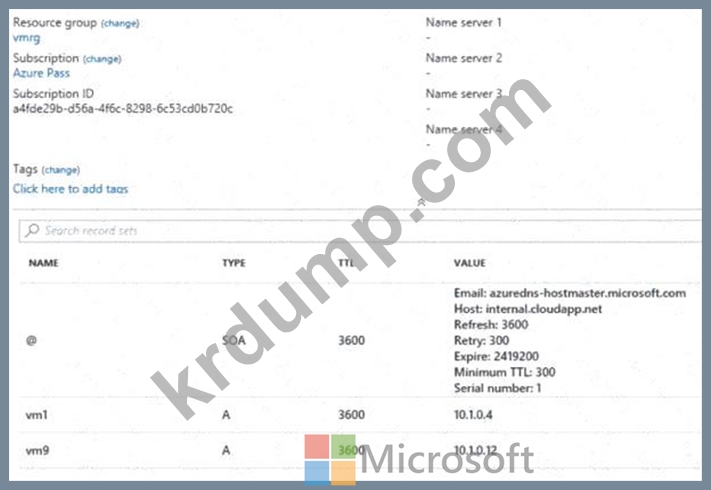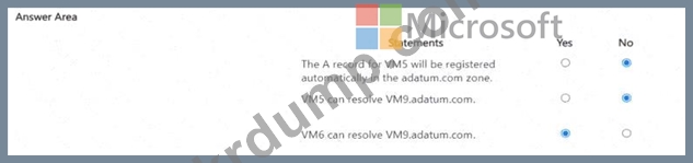 Azure에서 adatum.com이라는 개인 DNS 영역을 만들고 VNet2에 가상 네트워크 링크를 추가한 후 자동 등록을 활성화합니다.