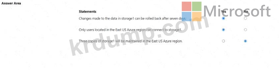 storage1이라는 저장소 계정이 포함된 Azure 구독이 있습니다. storage1 계정에는 이미지를 저장하는 BLOB이 포함되어 있습니다.