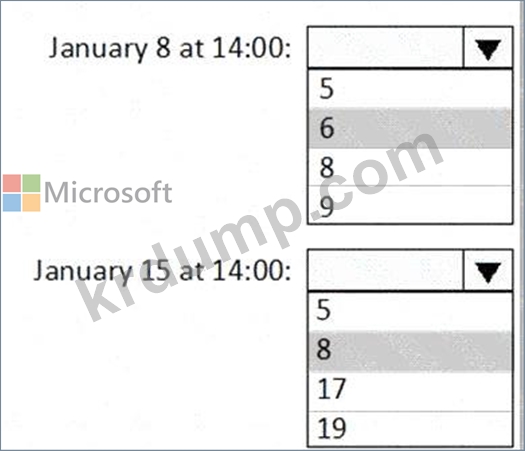 1월 8일과 1월 15일에 사용 가능한 복구 지점은 몇 개입니까? 답변하려면 답변 영역에서 적절한 옵션을 선택하세요.