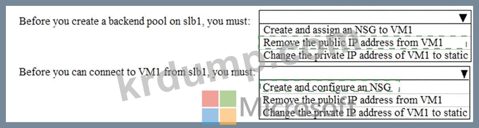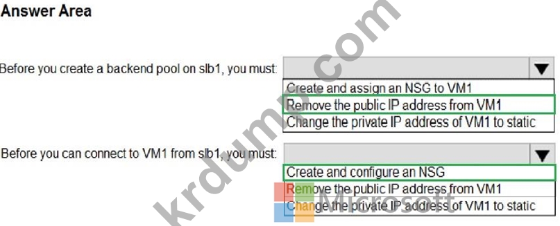 slb1을 구성할 때 VM1에 어떤 변경 사항을 적용해야 합니까? 대답하려면 답변 영역에서 적절한 옵션을 선택하세요.