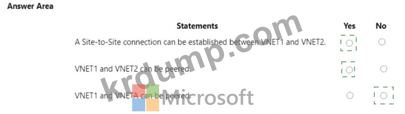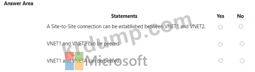 VNETA에는 다음과 같은 서브넷이 포함됩니다.