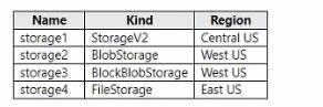 다음 표에 표시된 저장소 계정이 포함된 Azure 구독이 있습니다.