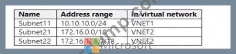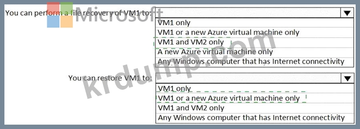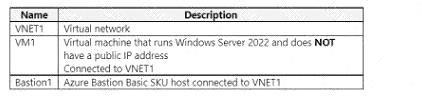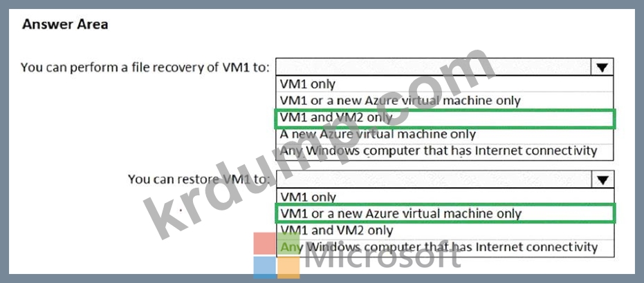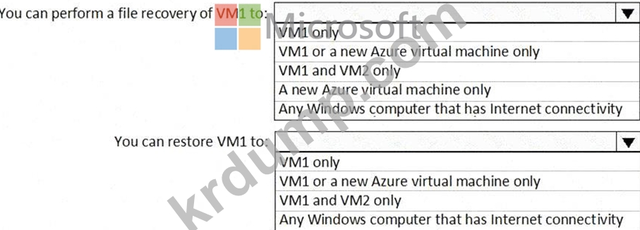Subscription1이라는 Azure 구독이 있습니다. Subscription1에는 VM1과 VM2라는 두 개의 Azure 가상 머신이 있습니다. VM1과 VM2는 Windows Server 2016을 실행합니다.