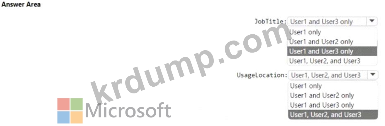 사용자의 JobTitle 및 UsageLocation 속성을 수정해야 합니다.