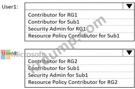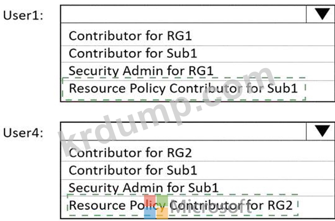 User1이 이니셔티브 정의를 생성할 수 있고 User4가 RG2에 이니셔티브를 할당할 수 있는지 확인해야 합니다. 솔루션은 기술적 요구 사항을 충족해야 합니다.