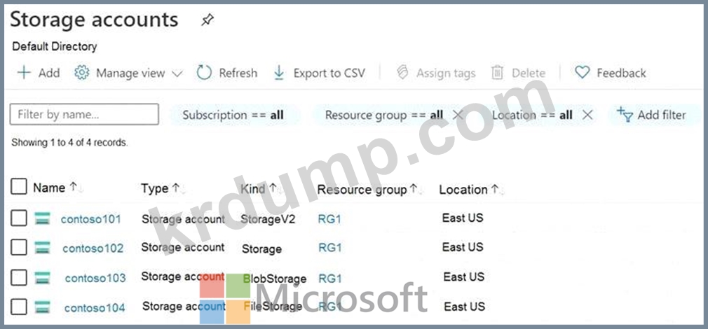 다음 그림에 표시된 저장소 계정이 포함된 Azure 구독이 있습니다.