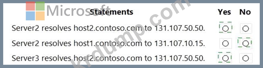 Server1은 다음 표에 표시된 리소스를 포함하는 DNS 서버입니다.