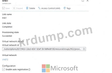 다음 그림과 같이 contoso.com에 대한 가상 네트워크 링크를 생성합니다.