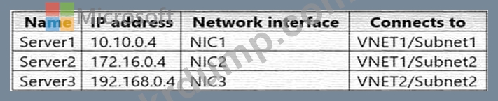 Azure 구독이 있습니다. 구독에는 Windows Server 2016을 실행하고 다음 표에 표시된 대로 구성된 가상 머신이 포함되어 있습니다.