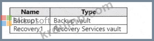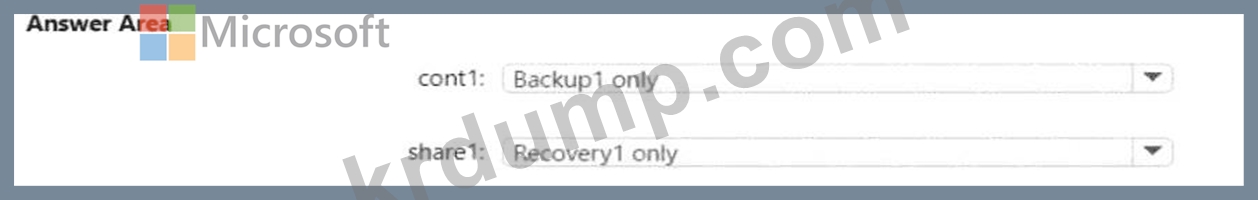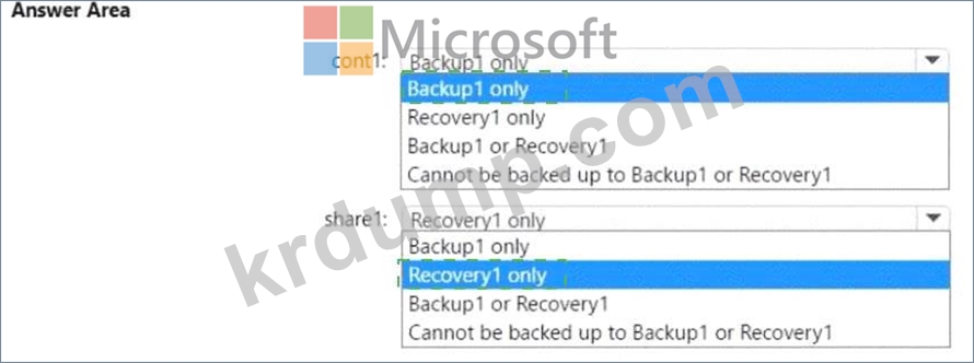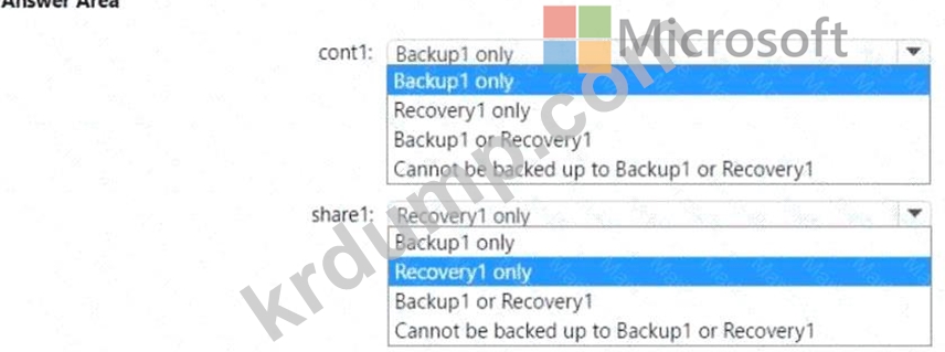 cont1과 share1을 어느 볼트에 백업할 수 있나요? 답하려면 답 영역에서 적절한 옵션을 선택하세요. 참고: 각 정답은 1점입니다.