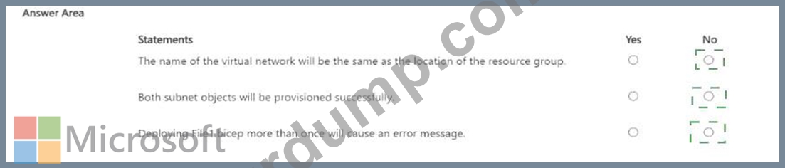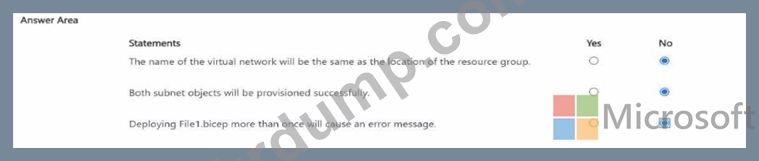 File1.bicep이라는 이름의 다음 파일을 배포할 계획입니다.