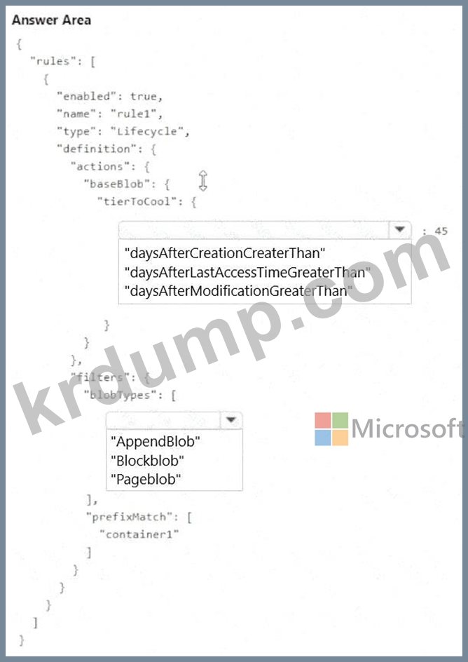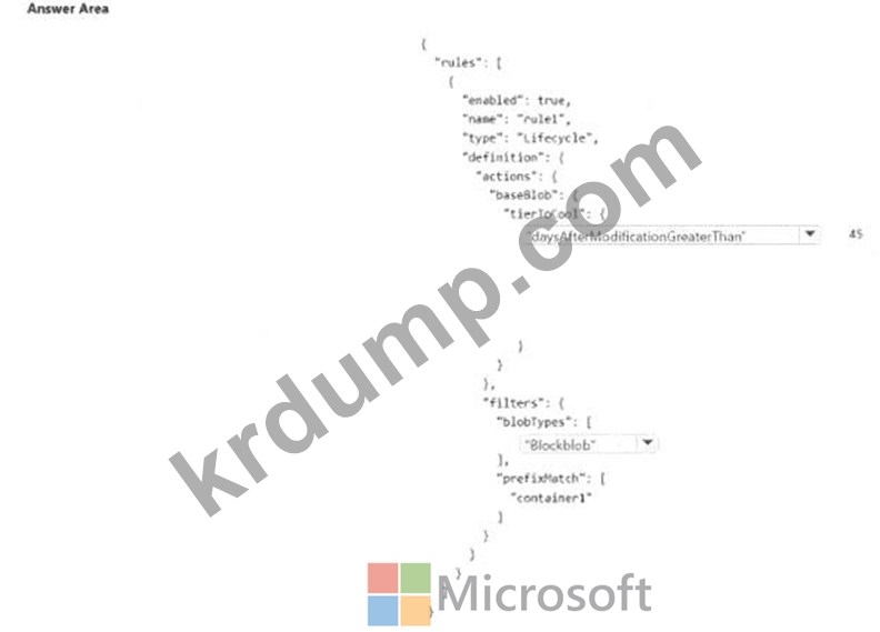 45일 동안 업데이트되지 않은 blob을 컨테이너에서 자동으로 이동하려면 rule1을 구성해야 합니다!