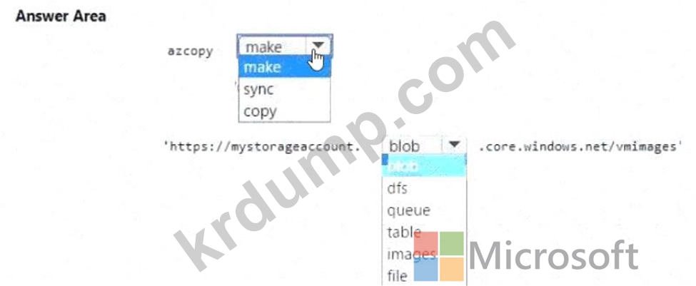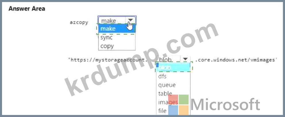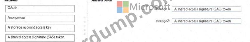 AzCopy를 사용하여 포함된 blob을 공유로 직접 복사하려고 합니다. AzCopy를 사용할 때 사용할 인증 방법을 식별해야 합니다.