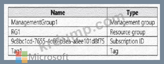 다음 표에 표시된 리소스가 포함된 Azure 구독이 있습니다.