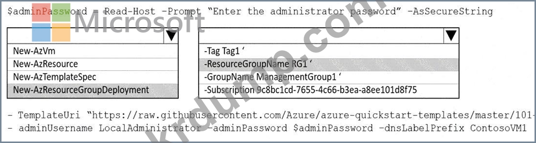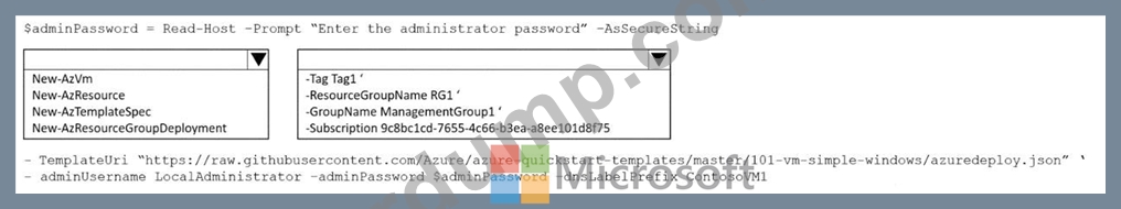 VM1이라는 Azure 가상 머신이 있습니다. VM1은 ARMIjson이라는 사용자 지정 Azure Resource Manager 템플릿을 사용하여 배포되었습니다.