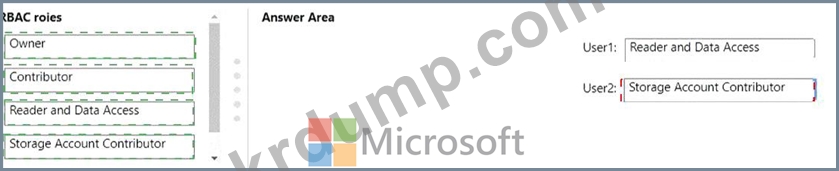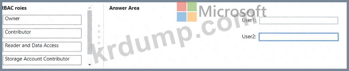 User1과 User2에 역할 기반 액세스 제어(RBAC) 역할을 할당해야 합니다. 사용자는 Sub1에서 다음 작업을 수행할 수 있어야 합니다.