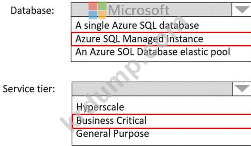 마이그레이션된 데이터베이스 DB1 및 DB2를 Azure에서 어떻게 구현해야 하나요?