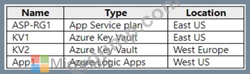 다음 표에 표시된 개체를 포함하는 RG1이라는 리소스 그룹이 있습니다.