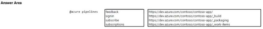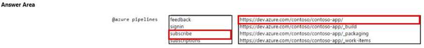 GitHub 리포지토리용 Azure Pipelines의 파이프라인을 포함하는 Contoso App이라는 Azure DevOps 프로젝트가 있습니다. Contoso 앱의 파이프라인에 오류가 있는 경우 개발자가 Microsoft Teams 알림을 받도록 해야 합니다. Teams에서 무엇을 실행해야 하나요? 답변하려면 답변에서 적절한 옵션을 선택하십시오. 참고: 각 올바른 선택은 1점의 가치가 있습니다.