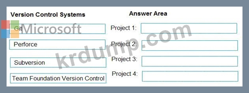 당신의 회사에는 4개의 프로젝트가 있습니다. 각 프로젝트의 버전 관리 요구 사항은 다음 표에 나와 있습니다.