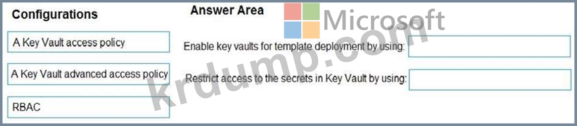 배포하는 동안 Key Vault에 저장된 비밀에 액세스하기 위한 솔루션을 권장해야 합니다. 솔루션은 최소 권한 원칙을 사용해야 합니다.