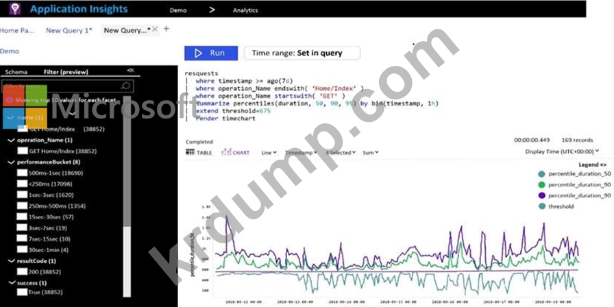 다음 전시회에 표시된 Application Insights 로그 쿼리가 있습니다.