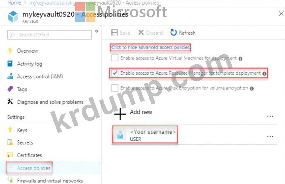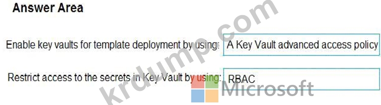배포하는 동안 Key Vault에 저장된 비밀에 액세스하기 위한 솔루션을 권장해야 합니다. 솔루션은 최소 권한 원칙을 사용해야 합니다.