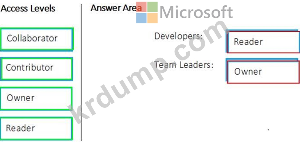 투자 계획 응용 프로그램 제품군의 개발자 및 팀 리더 그룹에 어떤 패키지 피드 액세스 수준을 할당해야 합니까? 응답하려면 적절한 액세스 수준을 올바른 그룹으로 끌어다 놓습니다. 각 액세스 수준은 한 번, 두 번 이상 또는 전혀 사용되지 않을 수 있습니다. 콘텐츠를 보려면 창 사이의 분할 막대를 드래그하거나 스크롤해야 할 수 있습니다.