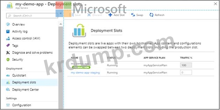 az400-11566895-main이라는 Azure Web App에 대한 CI/CD 전략을 구현할 계획입니다.