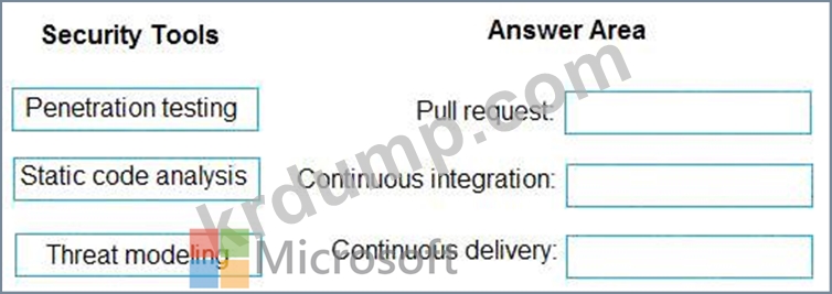 개발 프로세스의 각 단계에 어떤 유형의 보안 도구를 권장해야 합니까? 대답하려면 적절한 보안 도구를 올바른 단계로 드래그하십시오. 각 보안 도구는 한 번, 두 번 이상 또는 전혀 사용하지 않을 수 있습니다. 창 사이의 분할 막대를 끌거나 콘텐츠를 보려면 스크롤해야 할 수 있습니다. 참고: 올바른 선택은 각각 1포인트의 가치가 있습니다.