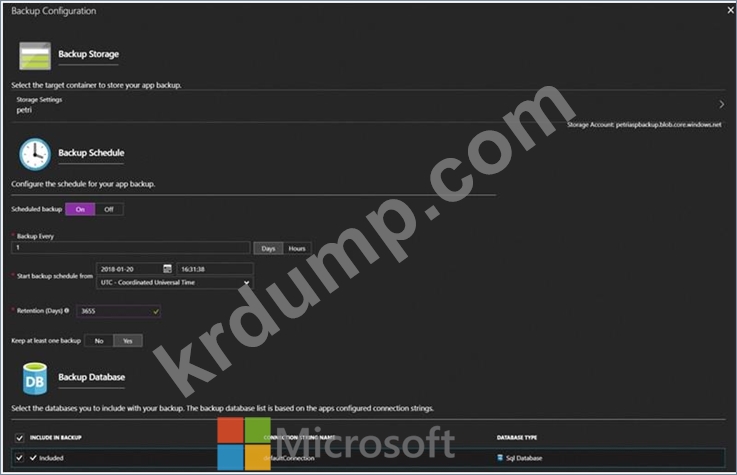회사는 모든 Azure 웹앱을 5시간마다 백업해야 하는 새로운 규정 준수 전략을 구현할 계획입니다.