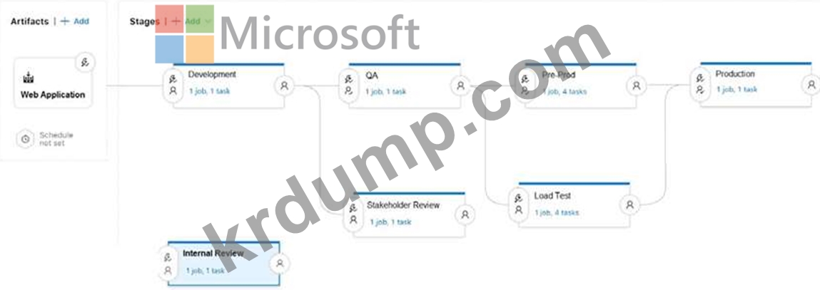 전시회에 표시된 대로 Azure DevOps에서 릴리스 파이프라인을 구성하고 있습니다.