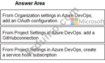 GitHub 커밋, pull 요청 및 문제를 프로젝트 1의 작업 항목에 연결해야 합니다. 솔루션은 OAuth 기반 인증을 사용해야 합니다.