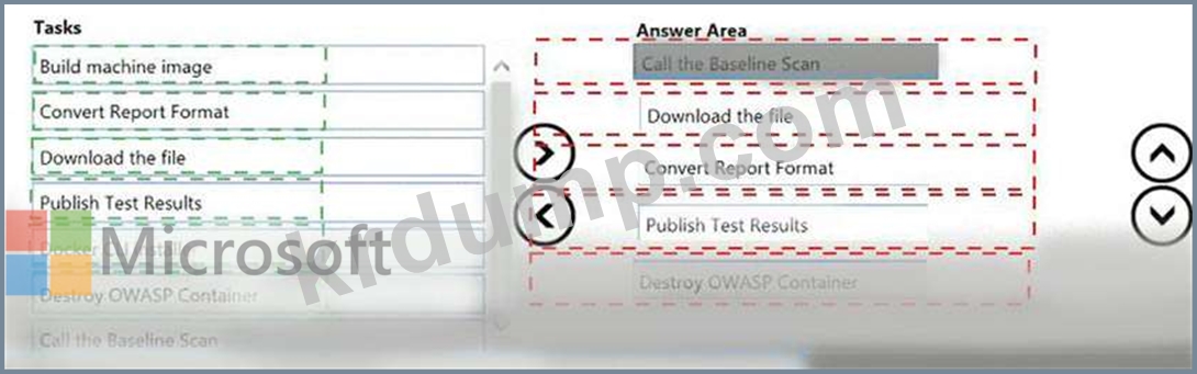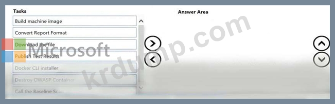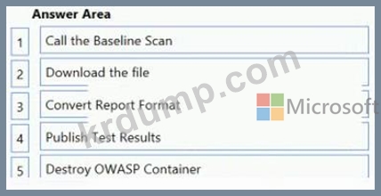 어떤 5가지 Azure CLI 작업을 순서대로 추가해야 하나요? 답변하려면 작업 목록에서 작업을 답변 영역으로 이동하고 올바른 순서로 정렬하십시오.
